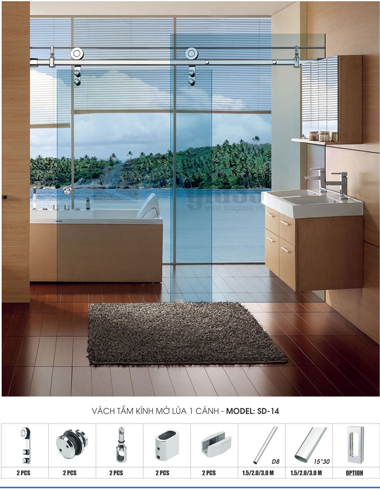 Một bộ phụ kiện vách kính phòng tắm gồm những gì phụ thuộc vào từng mẫu vách kính. Cụ thể, bộ phụ kiện cửa kính trượt gồm: