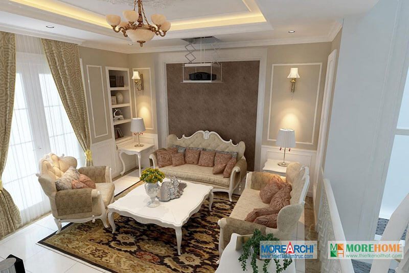 Thiết kế nội thất phòng khách biệt thự tân cổ điển cao cấp, sang trọng