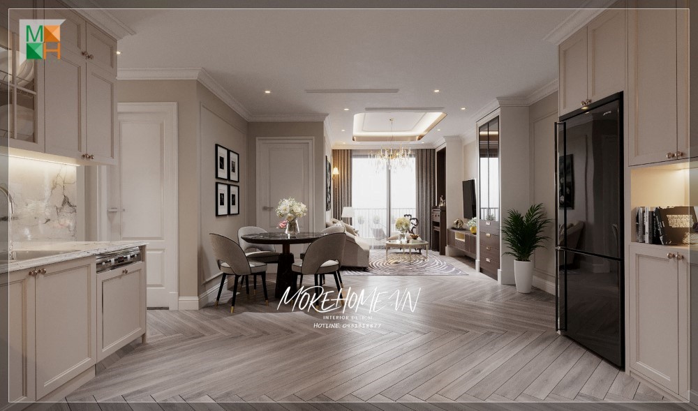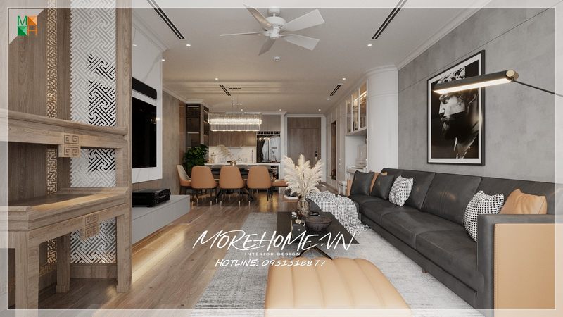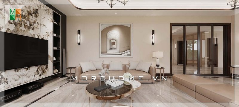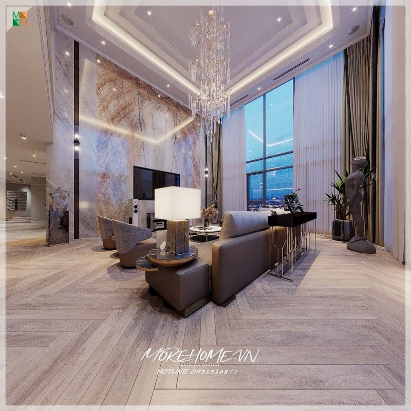 Morehome đem đến cho khách hàng mẫu thiết kế nội thất phòng khách cao cấp với chất liệu gỗ tự nhiên màu sắc nhẹ nhàng, tinh tế