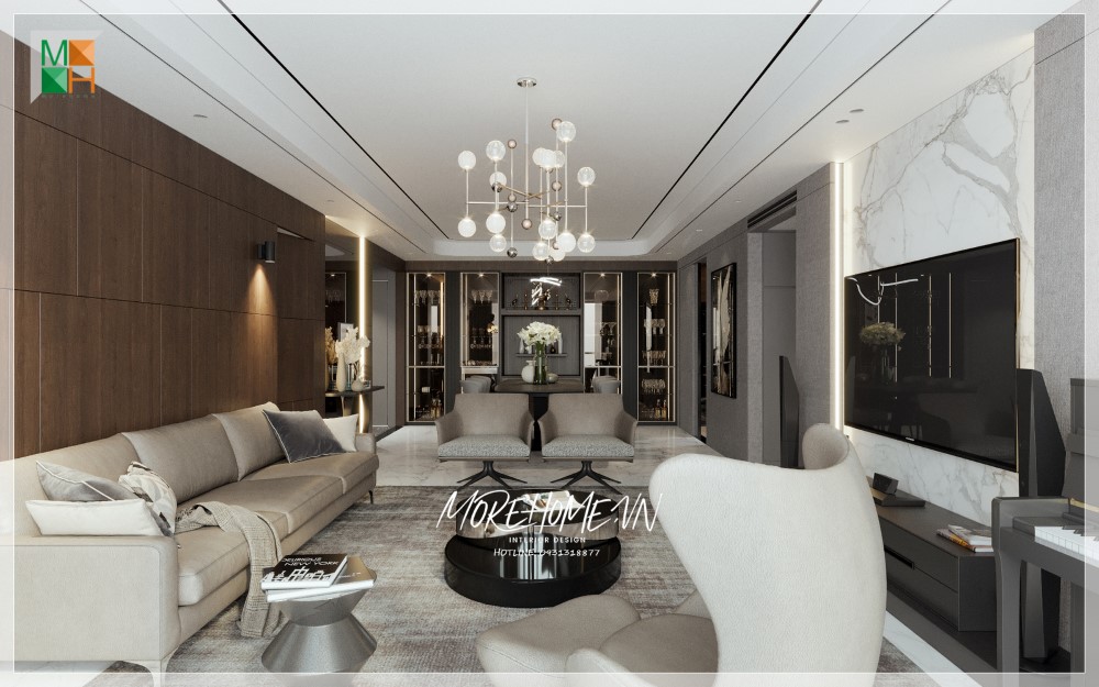 Thiết kế nội thất phòng khách theo phong cách hiện đại kết hợp các đường nét cổ điển tạo điểm nhấn
