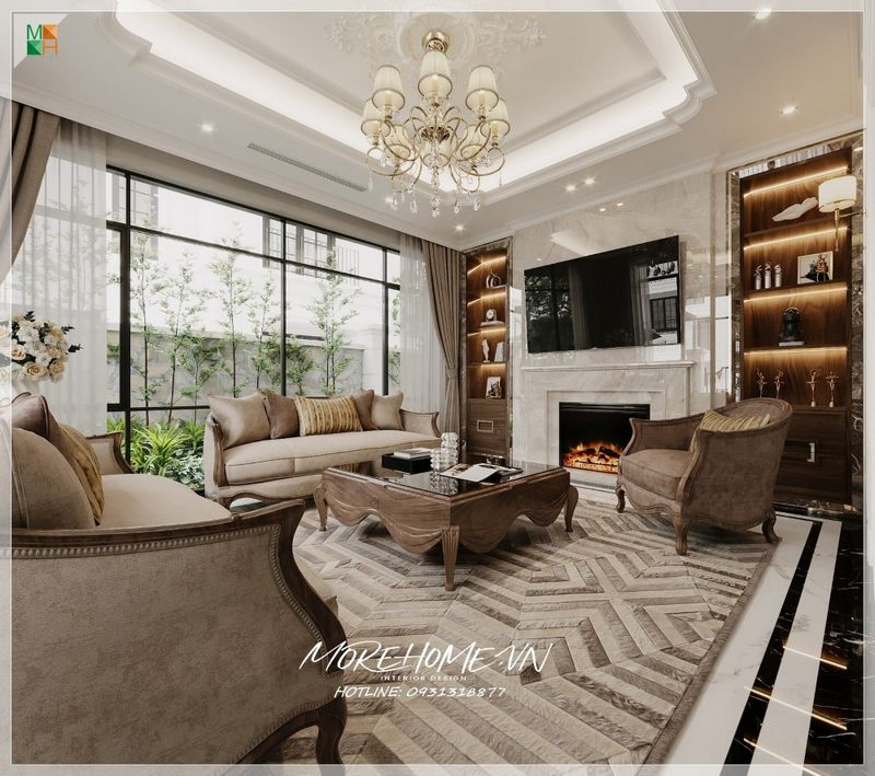 Thiết kế nội thất phòng khách biệt thự tân cổ điển sang trọng, đẳng cấp