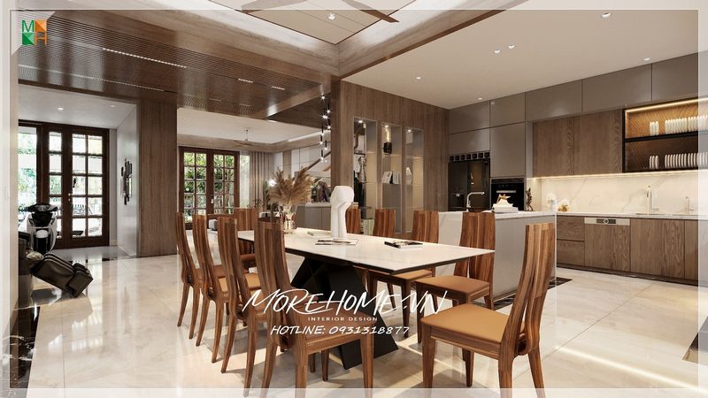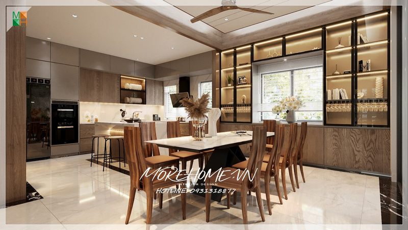 Một phong cách thiết kế hiện đại cùng với cách bài trí hài hòa hợp lý của món đồ nội thất giúp tạo nên 1 không gian bếp ăn hoàn hảo. Đây là 1 không gian mơ ước của rất nhiều gia đình.